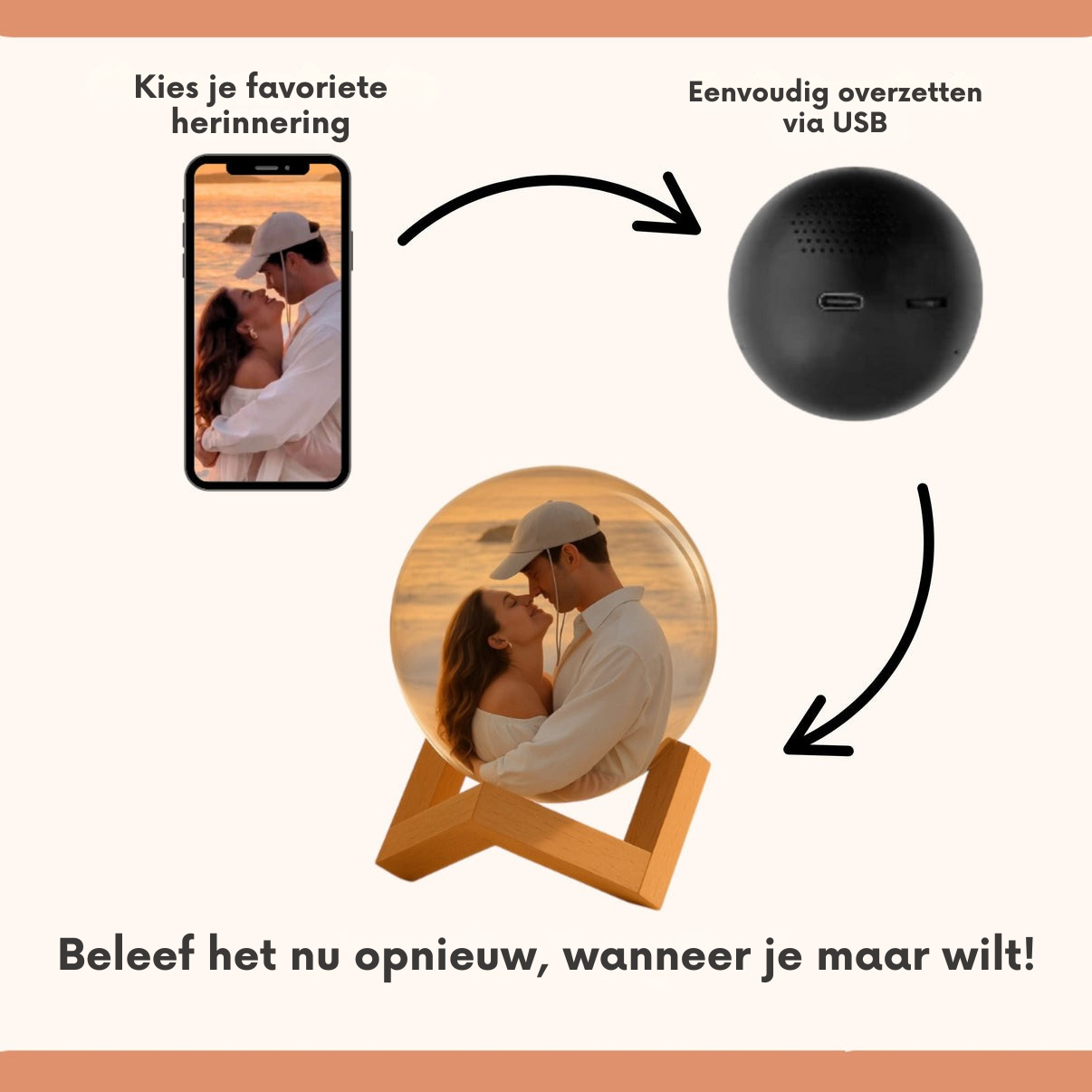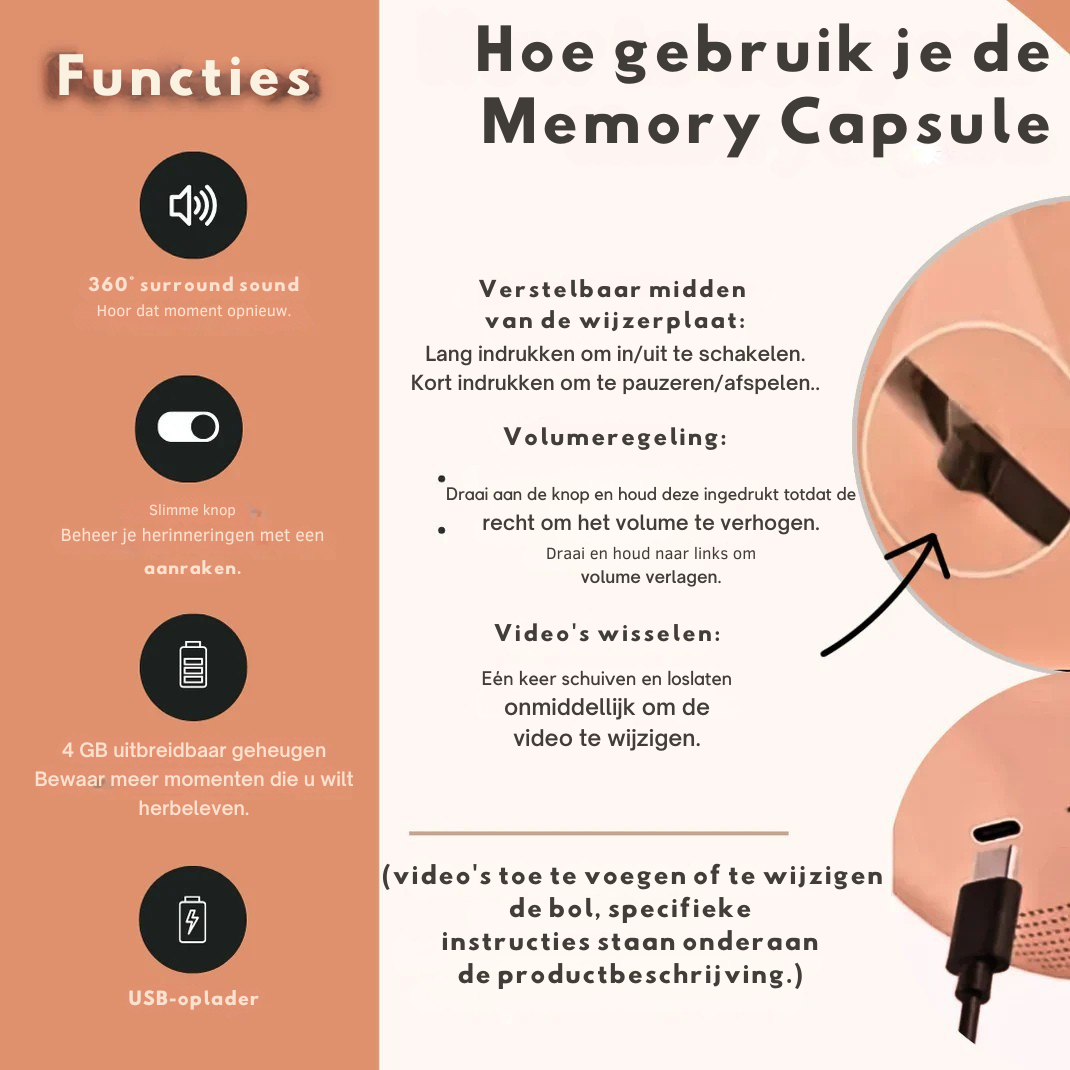 Memory Capsule™ it's a 3D crystal sphere with a built-in screen that plays your personalized video, so you can relive your most beautiful memories in a truly magical way. ✨